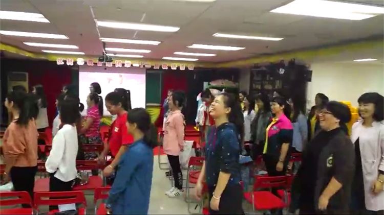 方向感游戏在主持人快速的口令变化下,老师们也有点招架不住了,欢乐的游戏气氛既让人乐开怀,又提高了自身的方位认知。